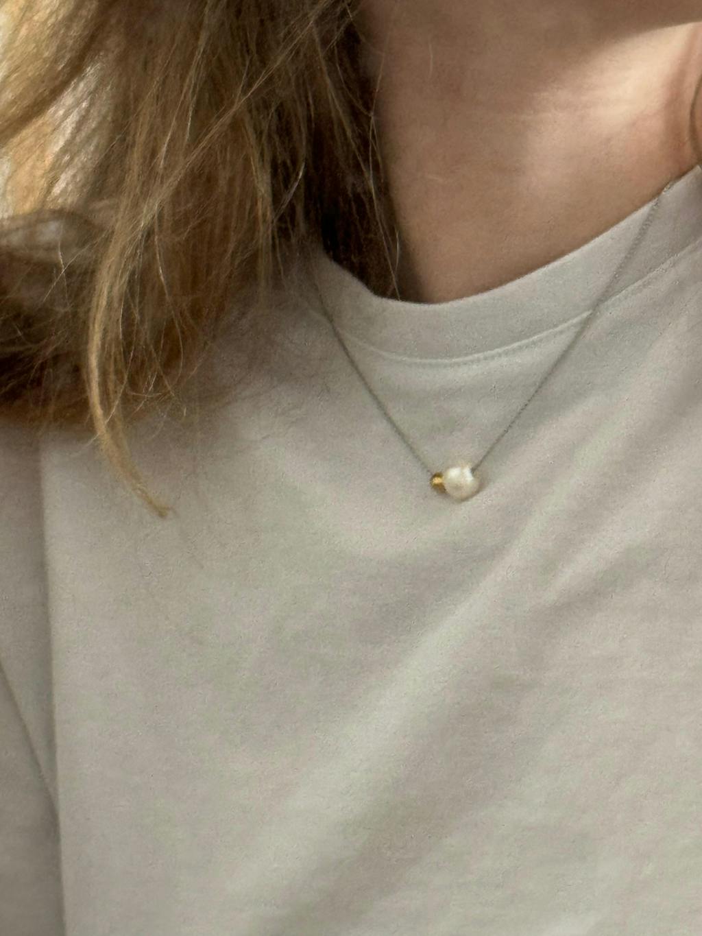 Composé d'une perle d'eau douce et d'une perle en acier inoxydable suspendues sur une chaîne fine, Nära incarne la simplicité et la tendresse. Discret, lumineux et plein de sens, il s’accorde facilement à toutes vos tenues du quotidien.